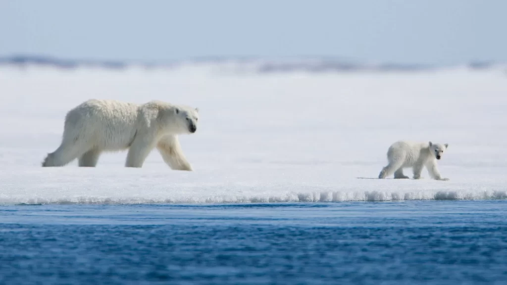 ในช่วงท้ายของหนัง กลุ่มสัตว์ทั้งคู่ต้องเผชิญกับการเปลี่ยนแปลงของภูมิอากาศเมื่อแผ่นน้ำแข็งเริ่มละลายเร็วขึ้น เพิ่มแรงกดดันในการหาอาหารและพื้นที่ปลอดภัย เรื่องราวจบลงในโทนที่ทั้งงดงามและสะเทือนใจ ทิ้งคำถามให้ผู้ชมว่าการกระทำของมนุษย์จะสามารถเปลี่ยนแปลงชะตากรรมของสัตว์เหล่านี้ได้หรือไม่ :contentReference[oaicite:4]{index=4}